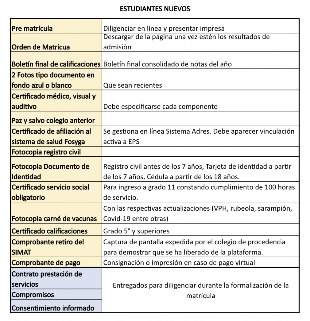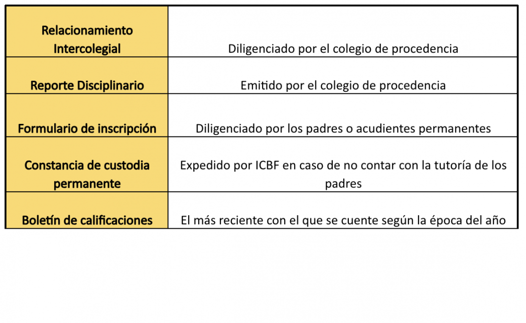 Cada una de ellas requiere de algunos documentos ya sea proporcionados por el colegio de procedencia, el padre o el Liceo.