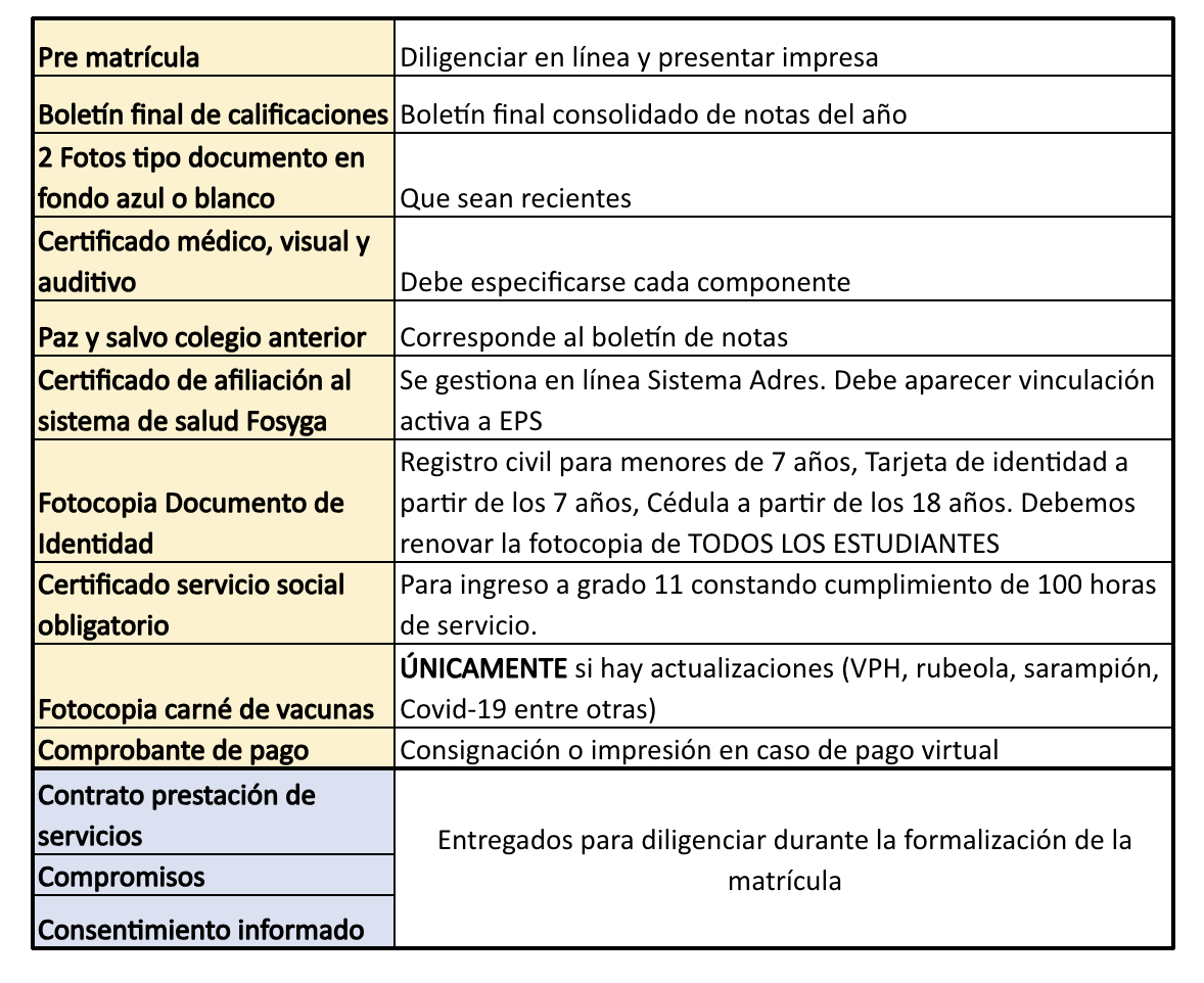 Cada una de ellas requiere de algunos documentos ya sea proporcionados por el colegio de procedencia, el padre o el Liceo.